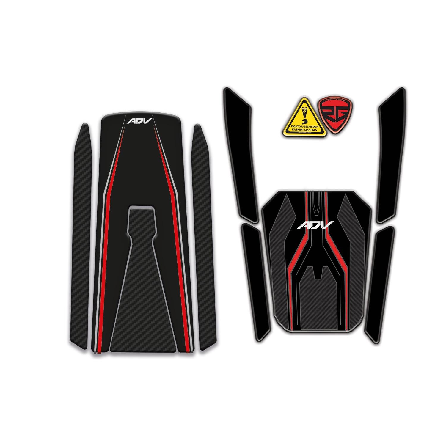 Redline Grafik Honda ADV 350 2023-2025 Uyumlu Kırmızı Siyah Tank Pad ve Ön Sele Altı Pad Kötü hava koşullarına, yıkamaya ve UV ışınlarına karşı dayanıklıdır. Darbelere ve çizilmelere karşı koruma sağlar. Yüksek kaliteli yapıştırıcı ve uygulaması kolaydır. %100 kaliteli viny sararmayan malzeme ile üretilir. Motosikletinizi kişiselleştirir, süsler.
