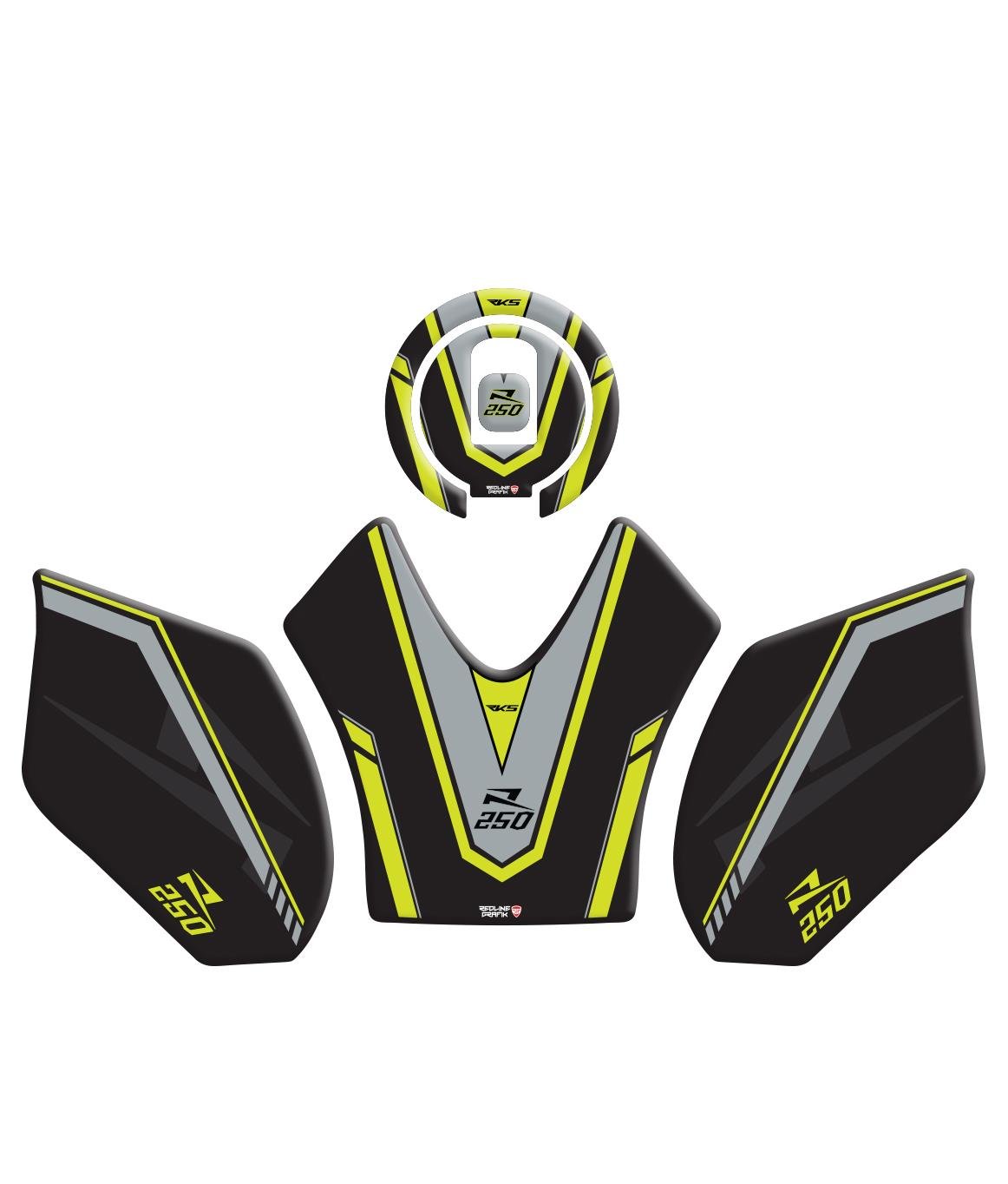 PAKET İÇERİĞİ: RKS R250 Neon Sarı Tank Pad Redline Grafik Yüksek kaliteli yapıştırıcı ve uygulaması kolaydır. %100 kaliteli viny sararmayan malzeme ile üretilir. Motosikletinizi kişiselleştirir, süsler.